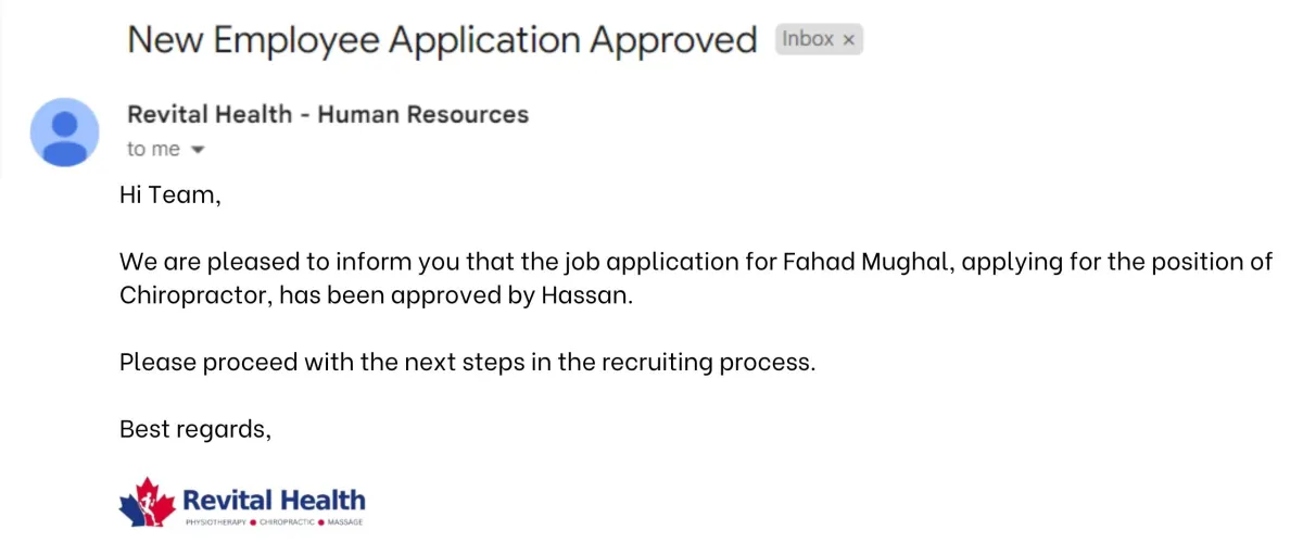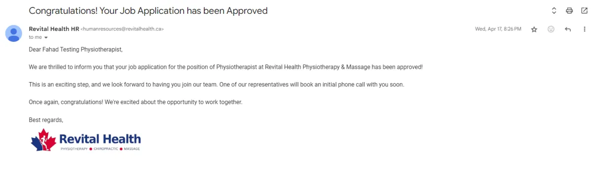 Candidate gets notified with an Onboarding Process on their submitted email.